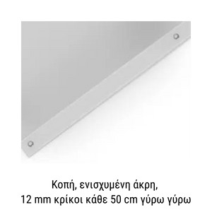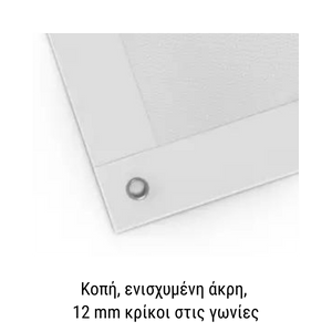 - Κοπή, ενισχυμένα άκρα, κρίκοι διαμέτρου 12 χιλ. στις γωνίες